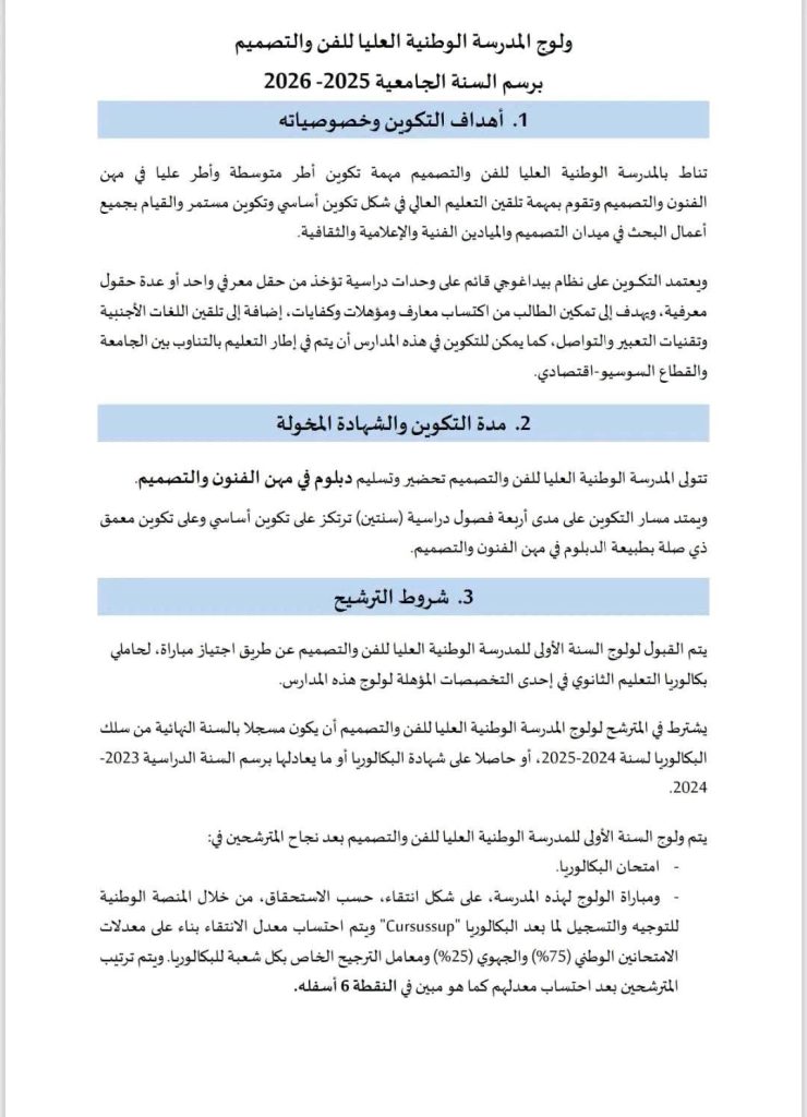 إذا كنت من حاملي البكالوريا وتطمح لمسار مهني في مجال الفنون والتصميم، فقد تم الإعلان رسميًا عن مباراة ولوج المدرسة الوطنية العليا للفن والتصميم ENSAD بمدينة الدار البيضاء، وهي فرصة ذهبية للانضمام إلى واحدة من أرقى المدارس المتخصصة في هذا المجال بالمغرب.