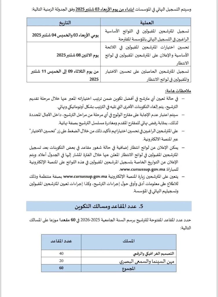 - 📍 التسجيل النهائي للمقبولين: ابتداءً من 3 شتنبر 2025